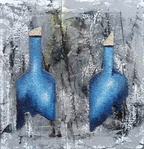 Bouteilles 1025B 30x30cm. Acrylique et sable.